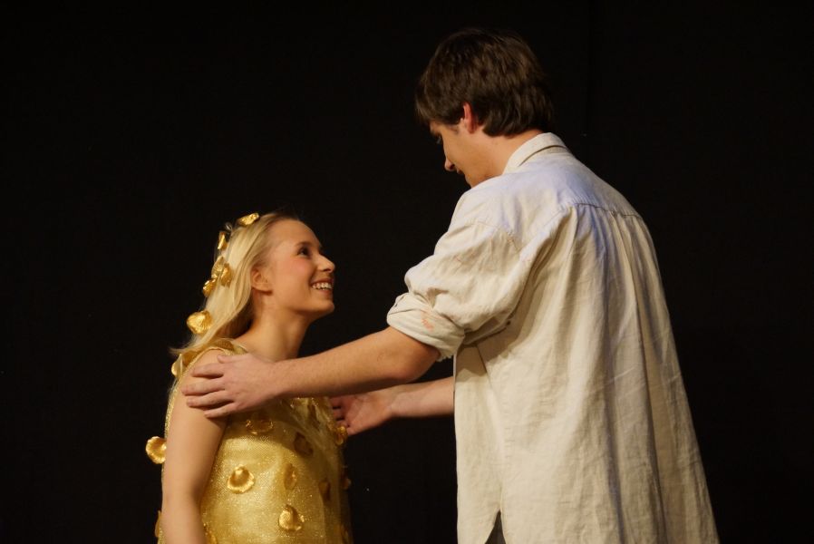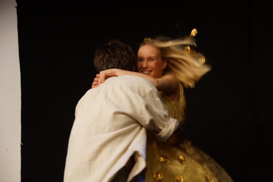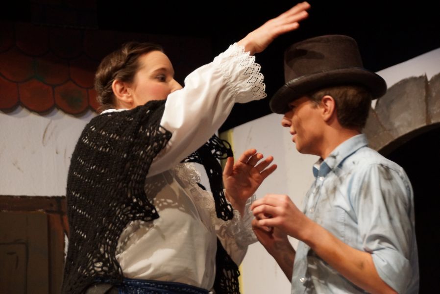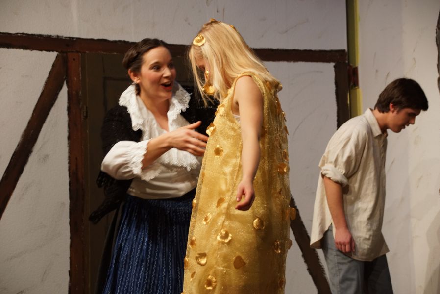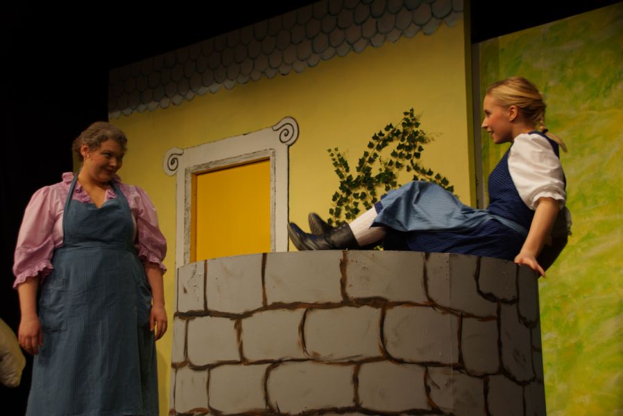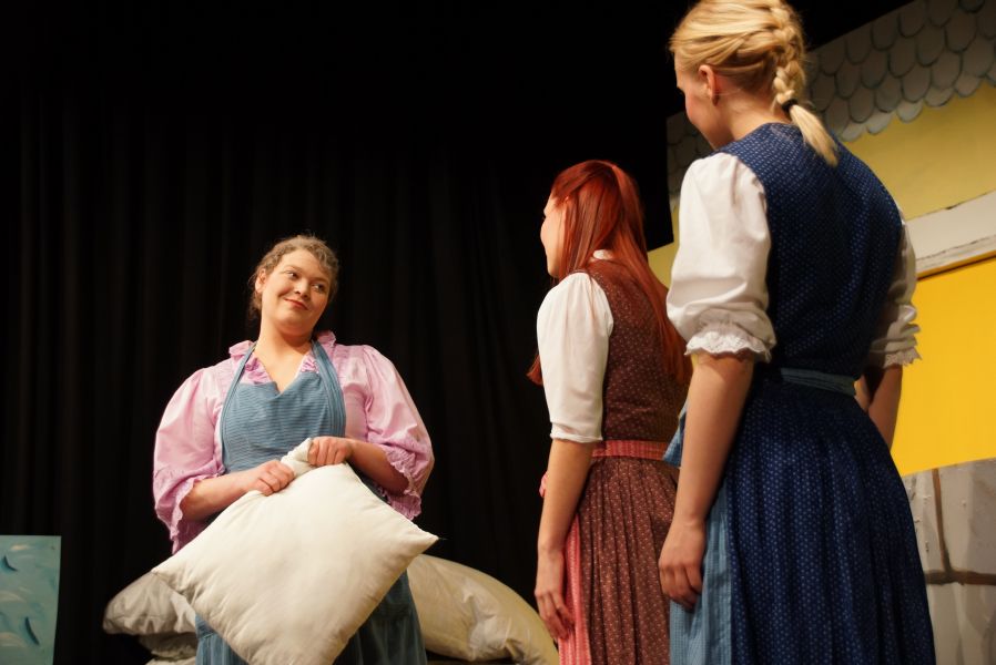 Frei interpretiert war der Schornsteinfeger (Felix C. Groll), der ein Auge auf Mariechen geworfen hat und „Hans im Glück“ (Quirin Bortenschlager), dem es die fleißige Stiefschwester angetan hatte.