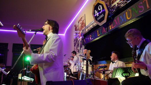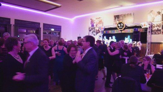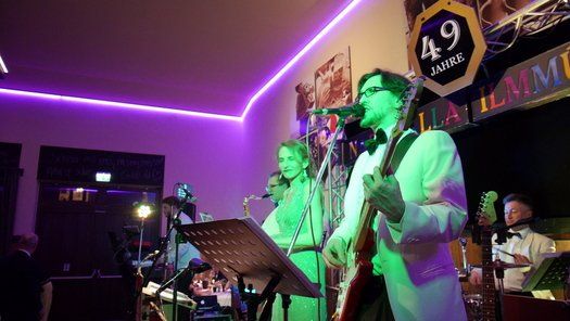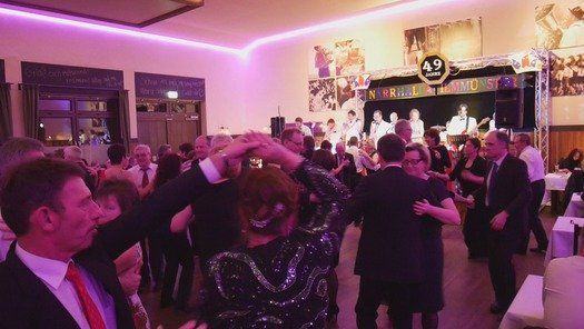 Mit dem Tanzorchester EMzwo spielte eine perfekte Band, die alle Standards mehr oder weniger aus dem Handgelenk zum Besten geben kann. Einen ausgebildeten Tenor als Sänger, die wunderbare Sängerin Petra und absolute Musikprofis an den Instrumenten, mehr Qualität geht nicht. Die acht Musiker spielen Tanzmusik im stets richtigen Tempo und lassen vom fetzigen Jive bis zum ausgefallenen Pasodoble keinen Wunsch unerfüllt.