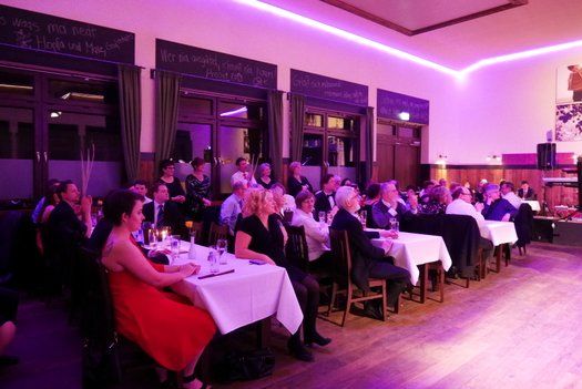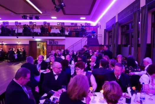 Viel, viel Platz hatten die Tänzerinnen und Tänzer in dem frisch renovierten Ballsaal, die Tischreihen waren auch für die Nichttänzer und Nurzuschauer bestens aufgestellt. Auch die Bar ist mittlerweile ebenerdig, das Treppenrisiko ist also auch minimiert. Im feinen Frack und noch feineren Abendkleid waren die Mitglieder und Freunde der Liedertafel Pfaffenhofen erschienen, um das Tanzbein zu schwingen.