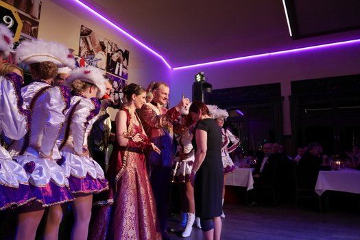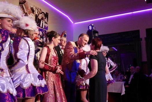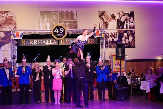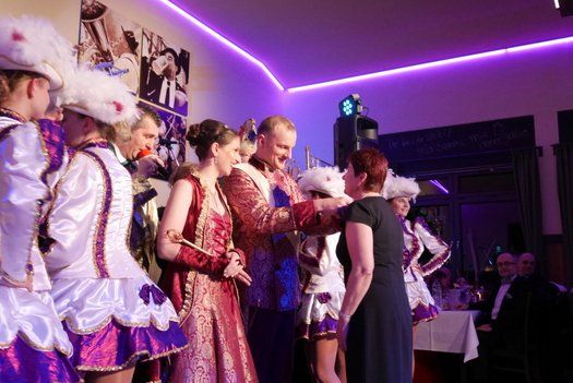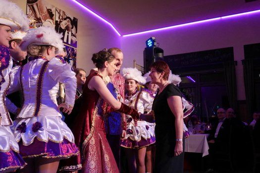 Als Höhepunkt trat die Narrhalla Ilmmünster mit ihrem kompletten Programm der Session 2015 an. Gewagte Akrobatik und Hebefiguren, wunderbare Gardemädchen und ein bezauberndes Prinzenpaar, das mit ihrem Walzer das Thema des Abends ungemein bereicherte. Szenenapplaus und rhythmisches Mitklatschen, die Liedertafelgesellschaft war begeistert. Ein Faschingsorden für die Vorsitzende Gabi Thurner war auch noch drin, aber aufpassen, die Gardemädchen kontrollieren, also immer an der Frau tragen.