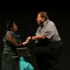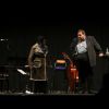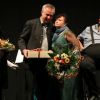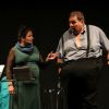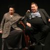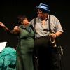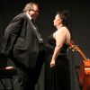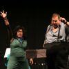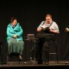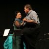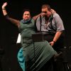 Otti und Lizzy, das ist nicht nur schwergewichtig bezogen auf die Leibesfülle, sondern ganz besonders auch, was den Gehalt des Programms angeht. Das "Elefantentreffen" hat natürlich seinen roten Faden im Ablauf und vorbereitete Themenblöcke; wie sehr die beiden Kabarettisten jedoch in der Lage sind zu improvisieren, zeigte sich von Beginn an in Reichertshausen: hatte schon Bürgermeister Reinhard Heinrich mit Bedauern feststellen müssen, dass die Heizungsanlage der Ilmtalhalle sich ganz offensichtlich entgegen der Außentemperaturen schon auf Frühling eingestellt hatte und die Temperatur in der Halle nicht unbedingt einen Wohlfühlfaktor darstellte, so avancierte diese Situation zu einem der Running Gags im Programm der Beiden. Anfangs noch ärmellos und damit sehr luftig gekleidet, ließ sich Lizzy Aumeier nach und nach Jacke, Mantel und Schal bringen, vergaß dabei selbstverständlich nie, den Bürgermeister und die Gemeinde in dem ihr eigenen Zynismus anzuprangern. ("Ist das hier 'Shades of Grey' von Oberbayern? Der Bürgermeister heizt die Halle nicht, um die Künstler zu quälen"). Otti hingegen - wie so oft im Laufe des Abends 'au contraire' zu seiner Bühnenpartnerin - erschien im zweiten Teil der Veranstaltung kurzärmlig und das Hemd bis zum fülligen Bauch aufgeknöpft.