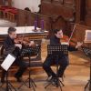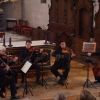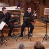 – Allegretto con variazioni, gespielt von dem Streichquartett Del’Arte, mit Viktor Konjaev an der ersten Violine, Alexander Konjaev an der zweiten Violine, Vadim Makhovskiy an der Bratsche und David Tskhadaja am Violoncello. Rainer Maier an seiner Klarinette gab den von Mozart so geliebten Teil an dem zu seiner Zeit noch seltenen Instrument.