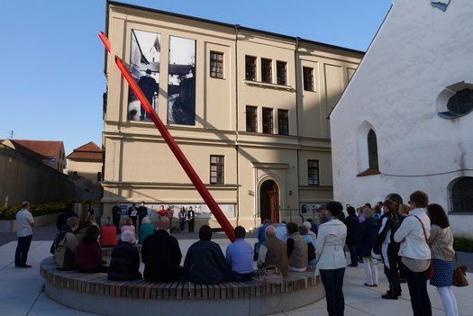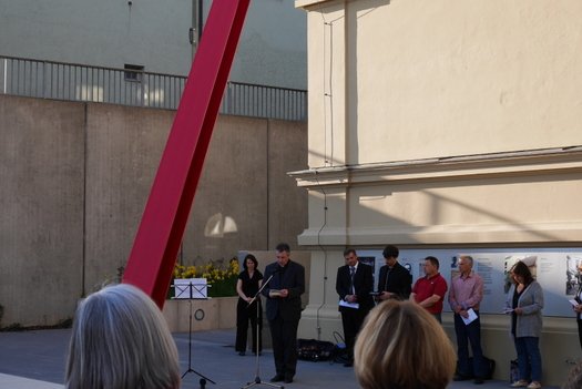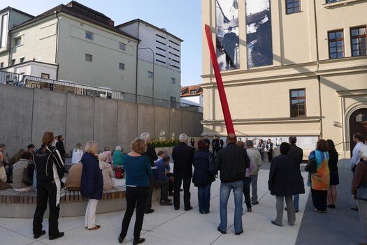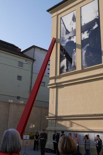 70 Jahre nach dem Holocaust, in einer Gegenwart mit erneut aufflammendem Antisemitismus und Fremdenfeindlichkeit setzt die Die Marsch des Lebens Bewegung http://www.marschdeslebens.org/ mit ihren bundesweiten Aktionen miterlebbare Zeichen, gegen das Vergessen. Mit dem Ableben der letzten Zeitzeugen werden die furchtbaren Geschehnisse immer abstrakter, fehlen den Menschen der Gegenwart greifbare Anker der Erinnerung. Das kürzlich eröffnete Denkmal für Opfer des Nationalsozialismus, neben dem Haus der Begegnung in Pfaffenhofen an der Ilm, ist so ein Anker, ein erlebbarer Ort der Versammlung und des Austausches. Der rote Stahlträger soll wie ein Stachel im Fleisch der Pfaffenhofener wirken und weithin ein „Nie wieder!“ signalisieren.