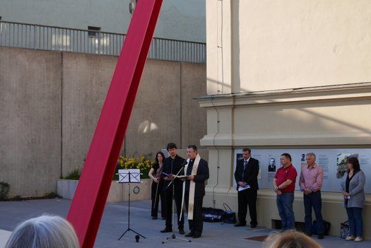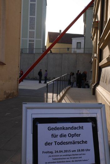 Eine Gedenkandacht für die Opfer der Todesmärsche der letzten Kriegstage vor 70 Jahren, fand am Denkmal für die Opfer der Nazi Diktatur in Pfaffenhofen statt. „Für die Opfer und im ehrendem Gedenken an die, die überlebt haben“ – Erinnern – Versöhnen - ein Zeichen setzen! Der Marsch Lebens steht auch, für nie wieder schweigen.