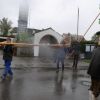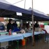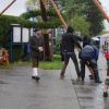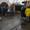 So schnell wie in diesem Jahr waren die Männer vom Schützenverein Hopfavogl, die traditionell das Dorffest ausrichten, aber noch nie. Der leidige Dauerregen erwies sich als nerviger Spielverderber, möglicherweise hat es sogar in die Getränke geregnet, des geht gor ned. Also Aufstellen und im Anschluss unter das bereitgestellte große Zeltdach, der Rollbraten sollte nicht auch noch kalt werden.