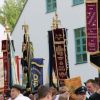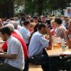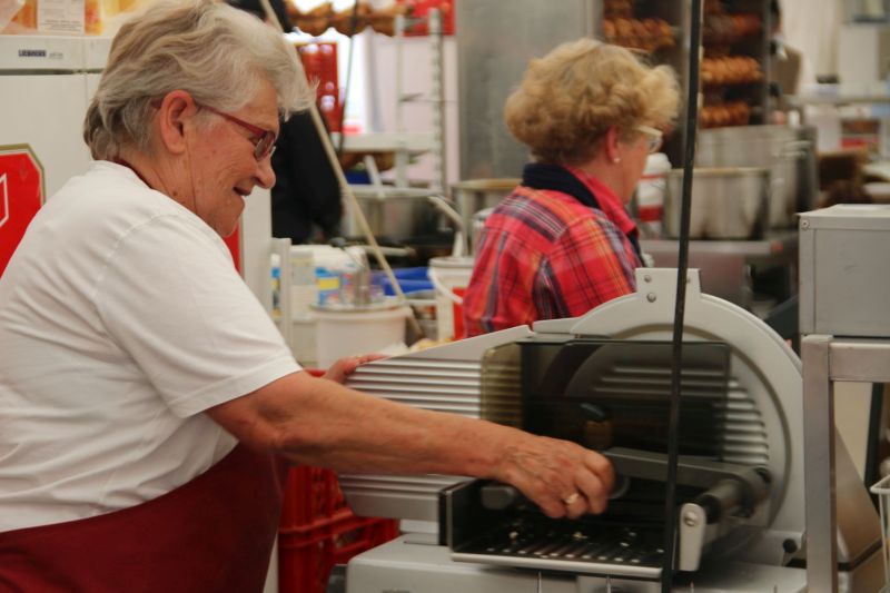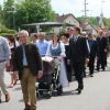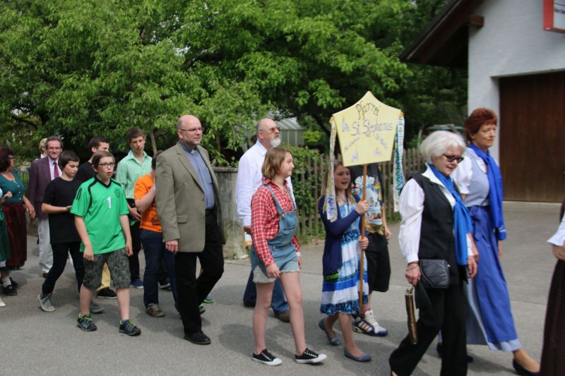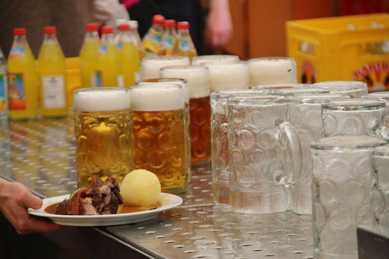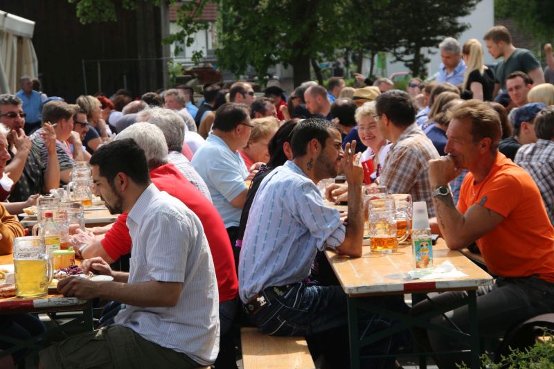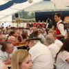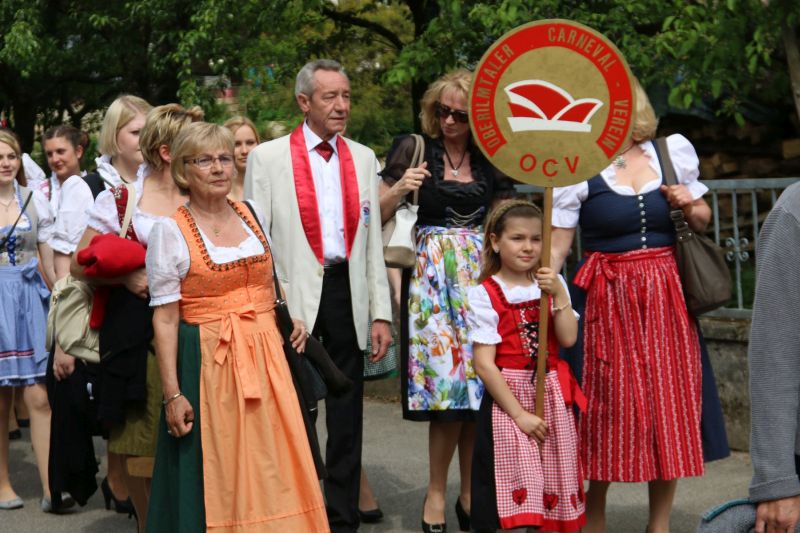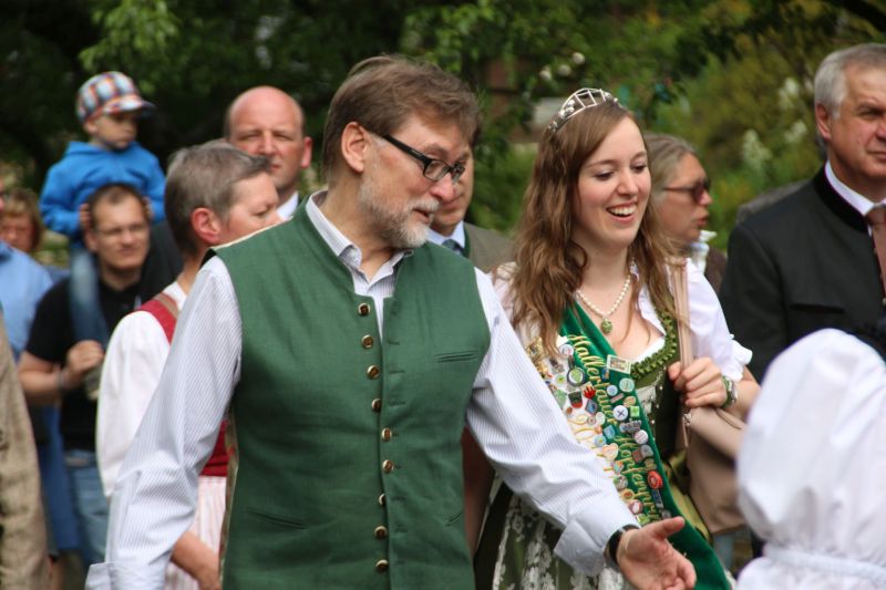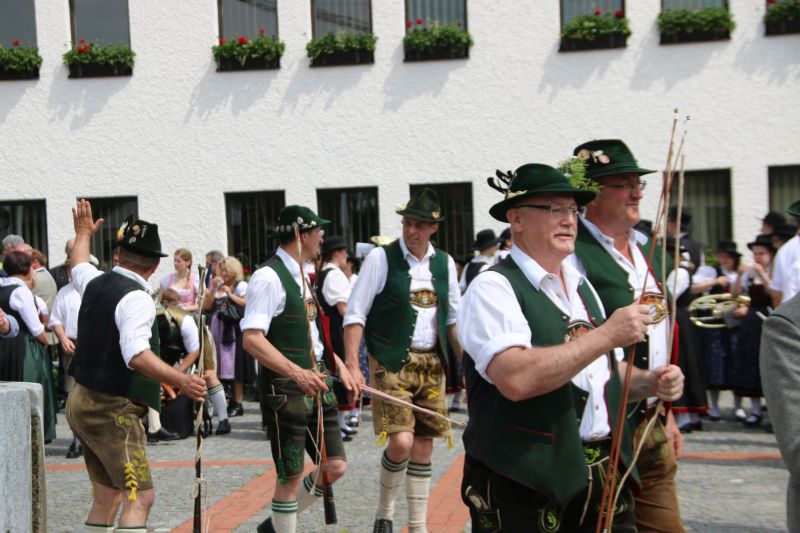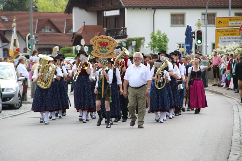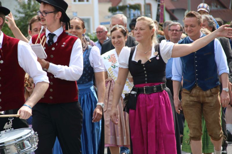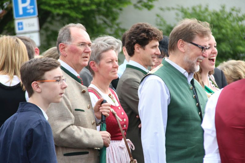 Insgesamt 33 Vereine begleiteten den Festzug vom Rathausplatz zum Volksfestgelände, angeführt von der Jugendblaskapelle der Gemeinde Reichertshausen, die musikalisch hervorragend auf die bevorstehende Atmosphäre einstimmte. War der Besucherandrang im Festzelt vor dem Eintreffen der Auszügler noch überschaubar, so kam das Servicepersonal von Festwirt Bernhard Stocker sehr schnell ins Schwitzen, als der Zug angekommen war und jeder seinen Platz an den reservierten Tischen gefunden hatte. Frühsommerliche Temperaturen einerseits, aber auch die unverzüglich überschwappende Stimmung forderten die ganz schnelle Maß, das genüsslich duftende Hendl oder andere Schmankerl aus Stockers umfangreichem Volksfest-Menü.