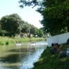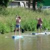 Die Teilnehmer jedenfalls, insgesamt 15 an der Zahl, standen souverän auf ihrem Brett und lieferten sich spannende Kopf-an-Kopf Rennen. Auf der etwa 200 m langen Paddelstrecke direkt auf der Abens wurde im Stehen gegeneinander gepaddelt, was das Zeug hielt. Schaulustige und Fans säumten das Ufer und heizten mit ermunternden Zurufen die Paddler kräftig an. Wer anfangs noch etwas wackelig auf den Beinen war, konnte von Runde zu Runde immer mehr an Standfestigkeit hinzugewinnen, um nicht stattdessen die sicherlich angenehme Wassertemperatur zu testen.