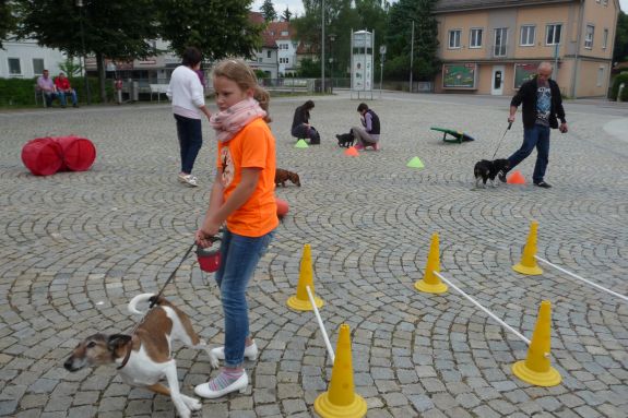 Die Hundeschule Holledau stiftet schriftliche Informationen zu den am meisten gestellten Fragen über Welpen und Junghunde wie zum Beispiel „Stubenreinheit“, „Alleinebleiben“, oder „Destruktives Verhalten“, die an die an anwesenden Hundehalter weitergegeben wurden. Zu jeder vollen Stunde fanden Übungseinheiten zu Erziehungsthemen wie „Leinenführigkeit“ oder „Rückruftraining“ statt. Zusätzlich konnten die Hundehalter gemeinsam mit ihren Vierbeinern einen Hindernisparcours absolvieren und ihren Hund an kleine Mutproben heranführen. Die Hundeschule Holledau ist seit langem schon bekannt für ihre kompetenten Profitrainer, die ihr jahrelanges Wissen gern auch in ihrem umfangreichen Kursangebot an alle Tierhalter weitergeben. Eine Besonderheit der Hundeschule ist das Angebot einer kostenlosen Beratung vor einem Hundekauf. So kann jeder herausfinden, welcher Hund am besten zu einem passt. „Unser oberstes Prinzip in der Hundeerziehung ist die positive Bestärkung“, berichtete eine Mitarbeiterin. Positive Bestärkung ist eine Ausbildungsmethode, die darauf aufbaut, dass der Hund für jedes erwünschte Verhalten belohnt wird. Durch die Belohnung gebe man ihm eine Information über das, was man von ihm erwarte, so dass die Wahrscheinlichkeit, dass der Hund das gewünschte Verhalten zeigt, sehr hoch sei. Über alle aktuellen Kursangebote kann man sich unter www.hundeschule-holledau.de jederzeit informieren.
