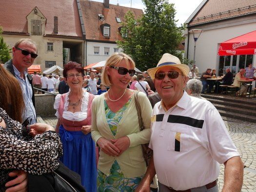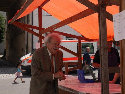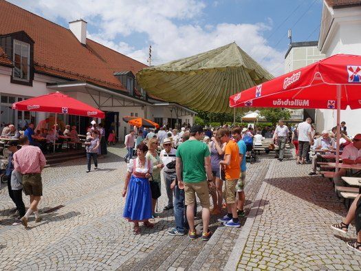 Vorstand Erwin Nischwitz und Stadt- und Kreisrat Franz Schmuttermayr wie immer friedlich vereint als Team beim Bierausschank, Stadtrat Martin Rohrmann traditionell beim Käse und der Schtod Max als Gast, der Tag war gerettet. Albert Gürtner überbrachte als zweiter Bürgermeister die Grüße der Stadt und gutes Gelingen.