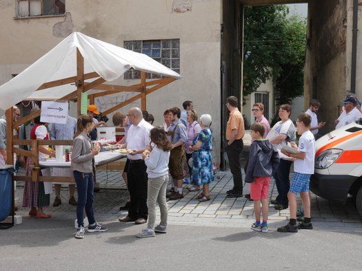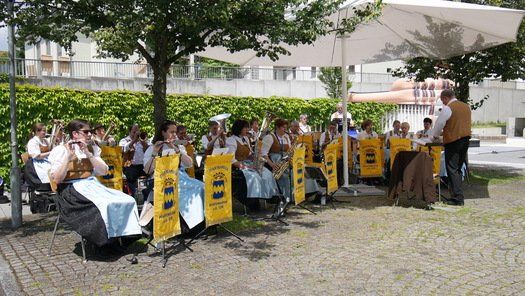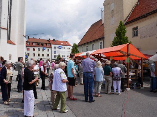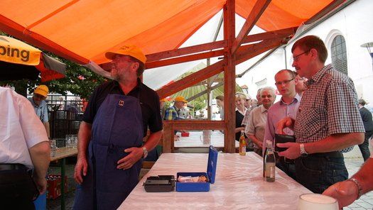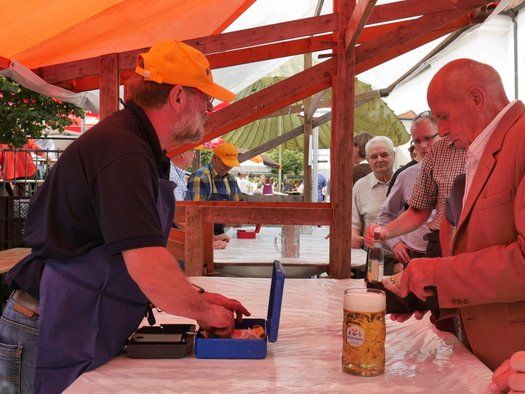 Nachdem Stadtpfarrer Peter Wagner mit seinen Gläubigen und lautstarker Unterstützung der Stadtkapelle die feierliche Sonntagsmesse unter freiem Himmel zelebriert hatte, ging es an die weltlichen Genüsse.