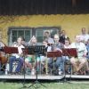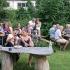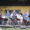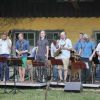 Der Anfang war gemacht, das Offizielle so kurz wie möglich gehalten, ein entspanntes Sommerfest konnte beginnen. Vom Kleinkind bis zum Opa, vom Rastaman bis zum Anzugträger, Musikliebhaber und Musikerfreunde aus 20 Jahren erfolgreicher, gemeinnütziger Arbeit gaben sich ein Stelldichein. Wenn die Jazzer feiern wird es opulent, das Werkstattjazzorchster gab die fast 20-köpfige Bigband unterm Scheunendach. Sound vom Feinsten, klasse Solos und feines Orchsterspiel, Jazz muss nicht immer frei und schräg sein.