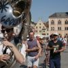 Vorstand Matthias Stadler, Kulturreferent Steffen Kopetzky und Wagge Singer hielten der Hauptplatzhitze noch kühlende Worte entgegen, bis es in aller Gemütsruhe in den bestens aufgeräumten und vor allen Dingen schattigen Musikgarten der Werkstatt ging. Bei frischen Getränken und ebensolchen Häppchen spielte die Neutral Ground Brass Band noch mal richtig kräftig auf.