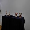 Der Weihnachtszeit zu Ehren, kann natürlich auch eine der feinen Kokosnusminiaturkrippen, die der Laudator als Dank und Anerkennung bekam, käuflich erworben werden. Das Verkaufen ist schließlich auch Teil von Kunst, keiner der Kreativen bietet seine (Dienst) Leistungen zum Selbstzweck an. Sich mit angenehmen Dingen die Welt verschönern, kostet denselben monetären Aufwand, wie die Steaksemmel und der Glühwein am nahen Weihnachtsmarkt.