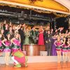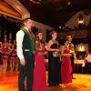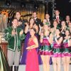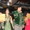 Als dann endlich der Hofstaat der Reihe nach einmarschierte, wurden allesamt vom Publikum eifrig beklatscht. Die acht liebreizenden Gardemädls in grün-lilafarbenen Stoffen, der Elferrat, das Komitee, die beiden Hofmarschälle, die Hofdamen, der Hofnarr Harald, und natürlich Mundschenk mit Marketenderin stellten sich vor.