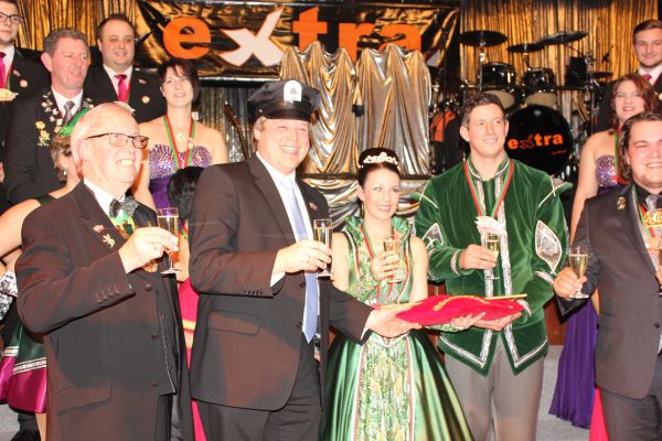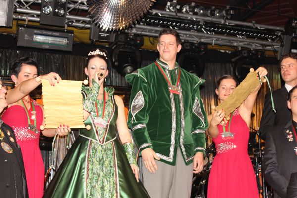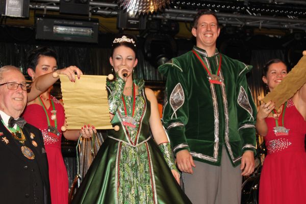 Begeisterten Applaus regnete es danach über das frischgebackene Prinzenpaar und als der 3. Bürgermeister Mathias Bendl die beiden offiziell inthronisierte, übergab er zugleich die Rathausschlüssel mit einer kleinen selbstgedichteten Rede. Ein paar Worte richteten selbstverständlich auch die freudestrahlende Prinzessin Diana I. alias „Lady Di“ und ihr stolzer Prinz Thomas III. an das Volk.