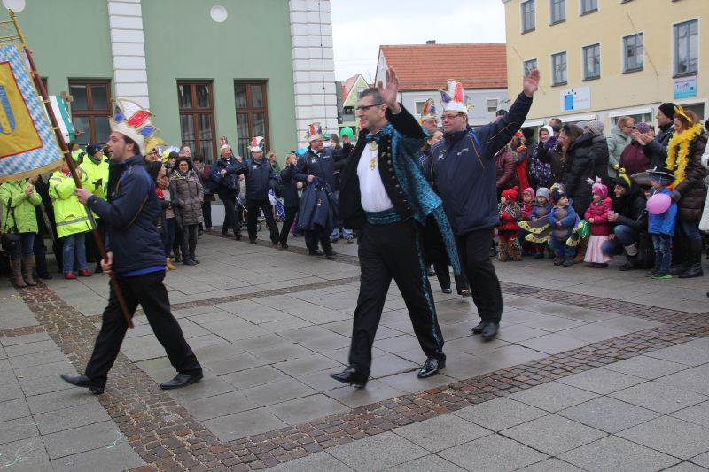 Danke sagten am Ende auch Hofmarschall Alfred Kapp, denn auch für die Ilmmünsterer war es wieder eine ganz besondere Ehre in Wolnzach vor dem Rathaus auftreten zu dürfen. Mit viel Beifall und beim Wunsch, dass sie im kommenden Jahr den Fasching wieder in Wolnzach eröffnen sollen, wurden die Narhalla Ilmmünster dann verabschiedet.