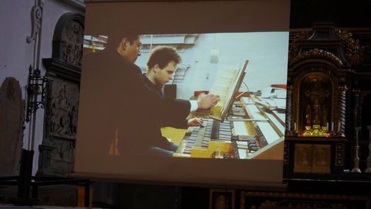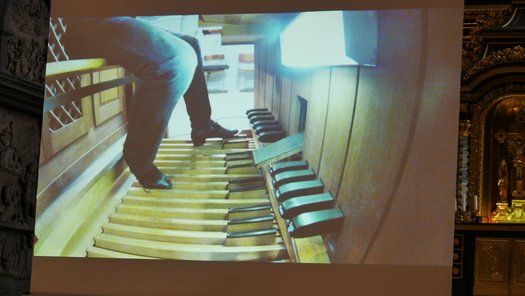 Für den Kenner sicher hilfreich, für den Laien, der durch die Videoübertragung Einblicke in das Spiel der Musiker bekam, eher nebensächlich. Das Erlebnis zählt, neudeutsch die „Show“, die der Besucher ja sonst nicht mitbekommt. Der Organist sitzt vor, oder besser in seinem Instrument, der Kirchenbesucher in seiner Bank und lauscht. Eine gelungene Vorstellung, die die jungen Musiker mit Bravur gemeistert haben.
