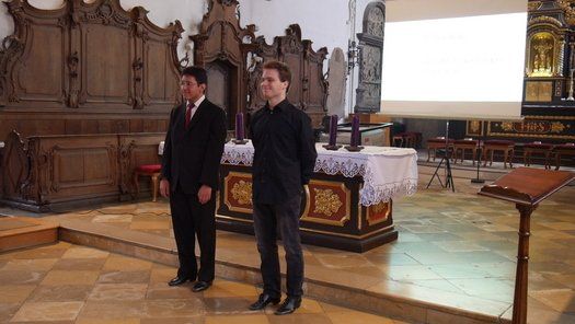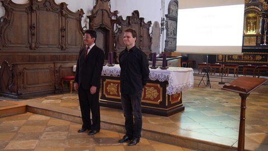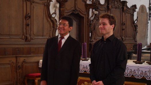Für die MEMO Konzerte hat Max Penger an diesem Sonntag zwei Schüler von Markus Rupprecht, Agustín Mejía Várgas und Veit Pitlok, Orgelstudierende an der Hochschule für Katholische Kirchenmusik in Regensburg, eingeladen. Mit ihrem Lehrer Markus Rupprecht hatten sich die beiden stundenlang in das nicht gerade einfache Programm eingearbeitet.