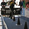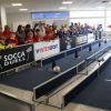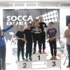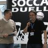Beim SoccaDuell geht es darum, mit dem Ball am Fuß möglichst schnell einen Parcours zu bewältigen, auf dem 5 Pylonen aufgestellt sind. Auf dem Hinweg geht es dabei noch - vergleichsweise einfach - geradeaus an den Pylonen vorbei; zurück heißt es dann jedoch: Slalom um die Hütchen herum. Aufpassen muss man, denn es darf kein Hütchen ausgelassen, aber auch keines umgestoßen werden. Die bewusst eng gehaltene Bahn, die lautstarke Anfeuerung durch die eigenen Fans hinter den Banden und last but not least die eigene Grundnervosität galt es für jeden Einzelnen in den Griff zu bekommen.