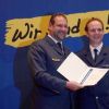 Nachfolger im Amt, Alexander Müller, im richtigen Leben Heizungsbau- und Kaminkehrermeister, ist seit 1999 beim THW und praktisch mit ihm „verheiratet“. Die wichtige Rolle der Lebenspartner hat an diesem Abend auch seinen lobenden Niederschlag gefunden und wurde symbolisch mit zwei Blumensträußen belohnt. Voller Ehrfurcht und voller Stolz auf die Leistungen der THW-Gruppe aus Pfaffenhofen, steht der neue Ortsbeauftragte Alexander Müller vor seiner neuen Aufgabe, die guten Grundlagen habe er seinem Vorgänger zu verdanken und er werde sein Bestes geben diese weiterzuentwickeln.