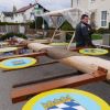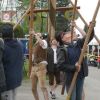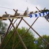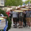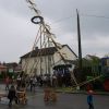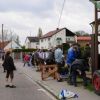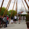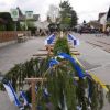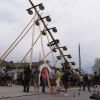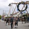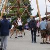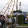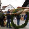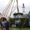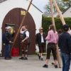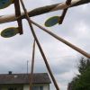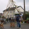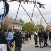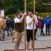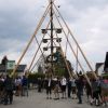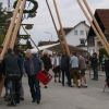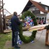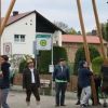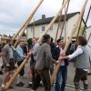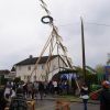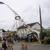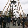 Früher durften nur unverheiratete, junge Männer Hand an die Stangen legen die den Baum Schritt für Schritt von der Waagrechten in die Senkrechte brachte. Stangenhalter oder „Vögler“, das sind die Mannen mit den Hilfsstangen, deren eiserner Haken wie ein Vogel im Flug ausschaut, anscheinend gibt es auch innerhalb der Maibaumgemeinschaft eine Hierarchie. Jedenfalls folgt das Ritual am 1.Mai festen Gesetzmäßigkeiten, die sich nur dem Eingeweihten erschließen. Die Menge und Marke des flüssigen Kraftstoffes, der natürlich umsonst und entsprechend gekühlt, im alten Feuerwehrschuppen bereit steht, ist wichtig, genauso wie die Zuordnung zur Kirchenseite oder Straßenseite.