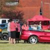 MSC-Chef Adolf Demmel erzählt mir, dass die Vatertagsgaudi erst um vier Uhr früh vorbei war: „Ja, das geht schon. Da gehst halt dann im sechsten Gang ins Bett, und nicht im Vierten. Nur verschalten darfst dich nicht“, erklärt der Ade und lacht wissend. Entsprechend geht es am Freitag etwas ruhiger zu. Glück haben die Herrschaften, die nur zum Camper gehen mussten und tags drauf ihr Reparier-Bier direkt an der Zeilhofbar holen können. Der Zeilhof selbst, für verschiedenste Veranstaltungen buchbar, ist ein Glücksgriff für das Event. Rundherum biegen sich die Wiesen und Acker in leichten Hügeln – ein Bildhintergrund, der den Autos würdig ist, und stören kann man auch niemanden – um den gemähten Bereich, und der Hof selbst ist der Inbegriff von Gemütlichkeit: Auf der überdachten Veranda blickt man gen West-Süd-West, beobachtet die Sonne über glitzerndem Autolack und Chrom untergehen. Unglaublich kitschig und sagenhaft schön. Nur Halbindianer Berrys Tipi fehlt entschieden, aber der Gute muss das Bett hüten.
