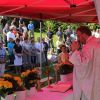 Im neuen Pfarrgarten begrüßte Pfarrer Przemyslaw Nowak mehr als 150 Biker und feierte gemeinsam mit ihnen unter freiem Himmel die Messe. „Es freut mich, euch alle hier zu diesem Fest im Pfarrgarten begrüßen zu dürfen“, so der Geistliche. Sie alle waren gekommen, um Gottes Segen für die anstehenden Monate zu erbitten. „Motorradfahrer sind zwangsläufig wilde Straßenraudis – wer das denkt, der irrt sich.“ Mit diesen Worten machte Pfarrer Nowak deutlich, dass es den Motorradfreunden nicht um den Rausch der Geschwindigkeit gehe, sondern sie alle die Begeisterung für schöne Ausfahrten teilen. „Dort kann man ein Gefühl der Freiheit, der Unabhängigkeit, aber auch der Gemeinschaft erleben“, fügte er an.