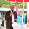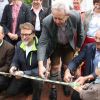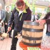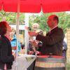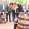 Landrat Wolf beim Anzapfen eines frischen Fasses – ein schwieriges Unterfangen… erst beim 3. Mal klappt´s.