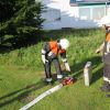 Knapp dreißig Jahre später rückte erneut die Feuerwehr aus – doch dieses Mal war es kein Brand sondern nur eine Übung. „In dieser Größenordnung sind sie eher selten“, erklärt der Kreisbrandinspektor. Gerade aber das Zusammenspiel der einzelnen Kräfte muss für den Ernstfall geübt werden. So war dann auch die Aufgabenstellung je nach Wehr eine andere. Während die Floriansjünger aus Gebrontshausen und Haushausen mit ihren Tragkraftspritzenanhängern vor Ort für die Wasserversorgung aus dem Postweiher und dem Larsbach zuständig waren, waren die Wolnzachern und Geroldshauser in der verrauchten Schreinerei auf der Suche nach vermissten Personen. Die Brandbekämpfung lag gemeinsam in den Händen der Feuerwehr Geisenfeld und Wolnzach. „Die Sicherung der umliegendenen Gebäude stand dabei im Fokus“, erklärt Einsatzleiter Georg Mirlach.