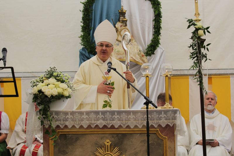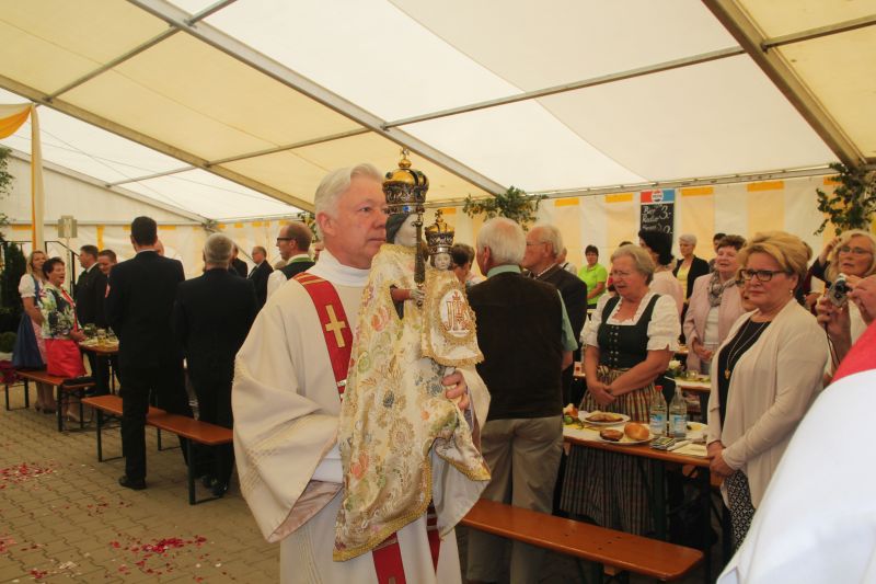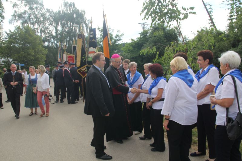 Etwas das man das ganze Jahr an den Wallfahrermessen in dem kleinen Gotteshaus sehen kann. Und so war es vielen auch ein Bedürfnis zu diesem Jubiläum nach Lohwinden zu pilgern. Von Wolnzach, Gosseltshausen aber auch von Rohrbach brachen die Gläubigen auf, um letztlich gemeinsam das zu feiern, was den christlichen Glauben so lebendig macht. „Die Kirche ist kein abgeschlossener Zirkel, sondern sie ist auch gerade ein Wegweiser für die Menschen“, erklärte Bischof Dr. Rudolf Voderholzer und verwies dabei auch auf die Bedeutung des christlichen Glaubens weltweit. Doch am Ende muss man den Blick gar nicht in die Ferne schweifen lassen, um zu erkennen, welche Stellung die Kirche innerhalb der Gesellschaft hat. Ein Blick nach Lohwinden genügt. Nicht nur hat man dort über viele Monate ein Jubiläum geplant und, wie auch der Bischof sagte, perfekt organisiert, sondern es kamen mehr als 800 Gläubige zu diesem Pontifikalamt. „Das ist ein starkes Zeichen, wie lebendig der Glaube heute immer noch ist“, so Voderholzer.