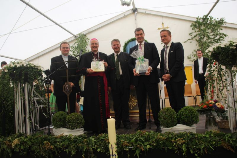 „Der Glaube ist für mich persönlich auch ein Quell der Kraft“, erklärte Bayerns Heimatminister Markus Söder. Der Franke war der Einladung gefolgt und kam wie viele Pilger zum Jubiläumsgottesdienst nach Lohwinden. Auch er war am Ende tief beeindruckt, nein bewegt von der Messe. Umrahmt von der Bläsergruppe um Papstpilot Martin Ott, konnte man von der ersten Sekunde an die ganz besondere Atmosphäre spüren. „Es gibt viele die Heilversprechungen machen, aber nur der christliche Glaube bietet den Menschen am Ende Halt“, so Söder weiter und sprach dabei auch von seinem ganz persönlichen Weg zurück zum Glauben. „Wir sind ein christlich geprägtes Land, in dem natürlich Werte wie Toleranz und Hilfsbereitschaft großgeschrieben werden, aber wir dürfen über dies die eigenen Werte und Traditionen nicht vergessen“, fügte der Minister an.