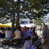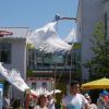 Wo sind die Schattenplätze, ob vor der Bühne, im Freizeitbereich oder im Garten, die Besucher waren die meiste Zeit von der gleissenden Sonne geflüchtet. Die Show auf der Bühne aber „must go on“, ob Bläserklasse oder Goaßlschnalzer, Tänzer, Sänger und Vorturner der Schultanzgruppe, alle schwitzen sich durch ihre Auftritte. Trotz- oder gerade wegen dieser schweißtreibenden Arbeit auf der sonnigen Bühne, wurde nicht mit Applaus gespart.