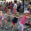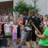 Der Spiel- und Spaßnachmittag ging nahtlos über in ein Rock-Konzert der ganz besonderen Art: Kizz Rock hatten ihre Anlage in bester Open-Air-Manier aufgebaut, der Frontmann Klaus seine Kondition auf Vordermann gebracht und die Band ihre Instrumente gestimmt. Und dann ging's los: zunächst suchte und fand man den "Käsefuß", dann formierten Klaus und seine Scheyrer Kinderschar die "Spaghetti Polonäse", um sogleich noch den "Marathon"-Lauf anzuschließen. Ohne Klaus zu nahe treten zu wollen: diese Kondition hätte man ihm bei erstem Hinsehen nicht zugetraut. Respekt! "Auch die Kids wollen Rock!", so der Antrieb zur doch schon eher harten Musikrichtung, was aber dazu führt, dass "Papa und Mama da auch gerne hingehen".