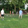 Auf dem Rasen vor dem Mannschaftsgebäude der ehemaligen Kaserne wurden die heranwachsenden Tennisstars von morgen beim Kleinfeldtennis angeleitet. Vorwiegend Jungs konnten ihre Schussstärke an einer Geschwindigkeits-Messanlage ermittelt. Auch die im Gebäude wohnenden Flüchtlinge hatten sich etwas einfallen lassen, so schoss eine Mohrenkopf-Schleuder die Belohnung fast in die Münder der Spielteilnehmer, sofern eine Zielscheibe mit einem Ball korrekt getroffen wurde.