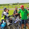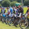 Pünktlich um 13.30 Uhr war es dann auch so weit und die ersten Fahrer begaben sich auf die Strecke. Vier Runden galt es zu absolvieren und nach Möglichkeit dann auch als erster über die Ziellinie zu rasen. Philipp Schmuttermayr zeigte in den Vorläufen, was den Bahnsport ausmacht. Mit einigen gewagten Überholmanövern setzte er mit insgesamt drei Siegen nach sechs Läufen ein deutliches Zeichen. Insgesamt 15 Punkte hatte Schmuttermayr so gesammelt und lag damit an der Spitze. Tim Brinkmann und Dennis Helfer lagen mit je 13 Punkten nach dem Vorläufen auf Platz zwei, dicht gefolgt von Fabian Wachs mit 11 Punkten.
