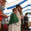 Alle immer sitzen bleiben, denn wenn vier auf einer Bierbank aufstehen, bleibt meistens einer sitzen, wer unbedingt knien will, soll das bitte im Mittelgang machen, sonst kommt die Bedienung nicht durch, der Pfarrer der auch Oktoberfesterfahrung im Service hat, weiß von was er spricht. Schon als Baby war er in Pfaffenhofen, eine familiäre Bindung nach Uttenhofen ist nie abgerissen und es ist einfach schön, als Pfarrer zurückzukehren, noch dazu auf Einladung des Pfarrgemeinderates, ins Bierzelt. Die Erfahrung in einem Bierzelt predigen zu dürfen, empfiehlt er allen Berufsanfänger, im Glauben, hier oben auf der Bühne zu stehen wo sonst die Blasmusik spielt, ist der richtige Ort um das Wort Gottes zu verkündigen.
