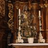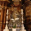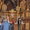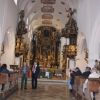 Die rund 30 Teilnehmer lauschten aufmerksam den Ausführungen von Pfarrer Georg Birner, der die Gruppe durch „Stationen“ der Kirche führte und Besonderheiten über die Orgel, diverse Heiligenfiguren und die Sakristei erläuterte. So soll Erzählungen zufolge die Orgel mithilfe eines Flaschenzugs nach oben transportiert worden sein.