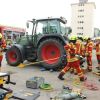 Weiterhin wurde ein Unfall simuliert, bei dem ein Mann eingeklemmt unter seinem Traktor befreit werden musste. Zusätzlich standen Einsatzkräfte des Roten Kreuzes zur Hilfe. Nach Ende der gut einstündigen Rettungsarbeiten, die reibungslos verliefen, wurde alles wieder sorgfältig verpackt.