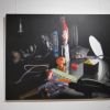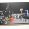 Fotorealismus ist der Fachbegriff, doch was den Inhalt betrifft, ist Scholter wieder ein Klassiker. Das Stillleben oder nature morte, befasst sich wie gesagt mit stillen oder eben toten Gegenständen. Im Klassiker wird oft die Vergänglichkeit auf die Leinwand gebannt, die gängigen Lehrstoffe an den Akademien, halten sich noch immer gerne daran. Christoph Scholter bricht hier aus, seine Arrangements erzählen direkt von seinem Alltag. Der Blick auf den Wohnzimmertisch nach durchzechter Nacht, das verträumte Sortieren der Jugendzeit mit Spielzeug und Romanfiguren, oder ganz aus der Leinwand heraus, weiß lackierte Schwimmflügel als Skulptur.