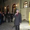 Nach einem kurzen Vorwort von Bürgermeister Thomas Herker zur Thematik, Vertriebene in Pfaffenhofen, wurde das Bronzedenkmal des Schrobenhausner Künstlers Richard Gruber, enthüllt. Der Künstler bedankte sich und nahm Stellung zum Text und dem Relief auf der Rückseite. Einen (Haus) Baum kann man nicht mitnehmen und doch wird er immer in Erinnerung bleiben, das alte Volkslied aus der Winterreise war sein Beitrag zum Thema.