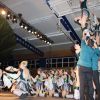 Die mittlerweile um vier Jungs verstärkte Gruppe von ca. 30 jungen Mädels in grün-silbernen Glitzergewändern zeigten meterhohe Pyramiden und ein flottes Tanzprogramm, das viel Kondition abverlange.
