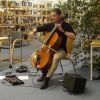 Jos Svyati das „Ein-Mann-Cello-Ensemble“ arbeitet mit einer Loop Maschine, er speichert also Klänge und baut sie später gekonnt wieder in das Stück ein. Wieviel dabei Improvisation ist oder gar provozierter Zufall, bleibt seiner Kunst überlassen, es hörte sich jedenfalls sehr spannend an.
