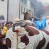 Eindrucksvoll waren auch die Wagen der Umzugsteilnehmer. Neben der riesigen Dampflock der Narrhalla aus Gammelsdorf und den verschiedensten „Hüttn“, befanden sich aber auch mehrere witzige Gefährte mit politischem Hintergrund darunter. Ob die Seysdorfer Kapelle, überworfen mit ihren zwei Planen war, die selbst gebaute Kuh, oder auch das „Sachstandsliste geschlossen- Schild“, ganz ohne Politik ging es auch in diesem Fasching in Nandlstadt nicht.
