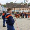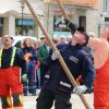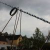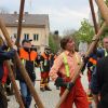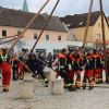 Meter für Meter und mit der nötigen Präzision wie Vorsicht kam der Baum immer mehr in die Gerade. Dafür dienten den Floriansjüngern die sogenannten „Alstern“, die an dem mächtigen Stamm angebracht wurden. Dies geschah ganz ohne Traktor. So dauerte das ganze zwar etwas länger als erwartet, doch nach zwei Stunden schweißtreibender Arbeit stand die Traditionsstange wie eine Eins.
