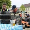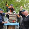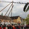 Stolze 28 Meter inklusive vergoldetem „Giggal“ am Wipfel misst der neue Maibaum der Mainburger. Nach getaner Arbeit erteilte Pfarrer Josef Paulus den göttlichen Segen. Bürgermeister Josef Reiser zapfte für die fleißigen Männer ein Fass Freibier an, es waren Bierbänke aufgestellt und die Stadtkapelle spielte Ständchen auf, sodass das Spektakel für die Öffentlichkeit im Freien seinen gemütlichen Ausklang fand.