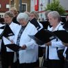 Passend zum Wetter wurden nach dem Abendgottesdienst die vielen Zuhörer am Marktplatz mit dem Stück „Endlich wieder Frühlingszeit“ musikalisch willkommen geheißen. „Vergessen Sie nun ihre Alltagssorgen und genießen Sie Gesang und Musik“, appellierte Bärbel Lang an das Auditorium.