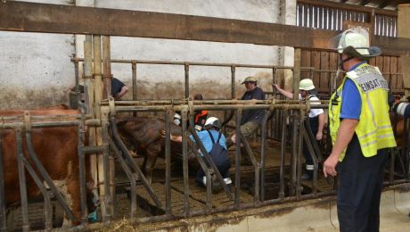 Nachdem im Hohenwarter Ortsteil Deimhausen gestern gegen 16.35 Uhr drei Kühe durch den Stall-Spaltenboden gebrochen sind und im Gülle-Auffangbecken landeten rückten...