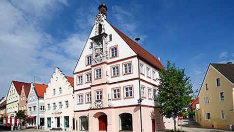Marktplatz eins lautet die Adresse des schmucken roten Baus mit den Rundbogenarkaden im Erdgeschoss, den drei Wappen und dem imposanten Erker mit Turm. Zentraler...