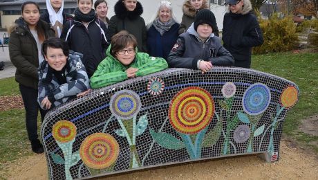 Das „Social Sofa“, mit dessen Gestaltung die Mosaikkünstlerin Caroline Jung zusammen mit Schülern der Reichertshofenr Grund- und Mittelschule an Ostern begonnen...