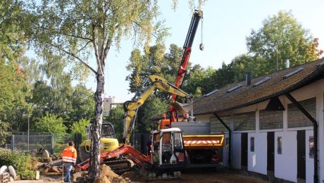 Eine offene Baustelle im Innenhof des Freibadgeländes nutzten die Stadtwerke und bauten dort im zwei Sickerschächte ein. Darin wird künftig Niederschlagswasser...